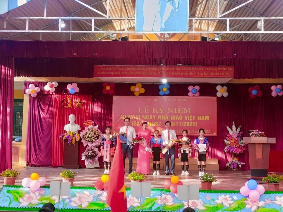 Hòa chung trong không khí tưng bừng, phấn khởi của các thế hệ giáo viên và học sinh trên cả nước chào mừng kỷ niệm 40 năm ngày Nhà giáo Việt Nam (20/11/1982 - 20/11/2022), với sự chỉ đạo sát sao của Ban chi ủy, Ban giám hiệu nhà trường và đặc biệt với tấm lòng tận tụy với nghề, dành hết tâm huyết cho các em học sinh thân yêu. Ngay từ đầu tháng 10 trường PTDTBT Tiểu học Ma Thì Hồ đã phát động phong trào thi đua thầy dạy tốt - trò học tốt chào mừng ngày NGVN 20/11 và tổ chức nhiều hoạt động sôi nổi, thiết thực hướng tới ngày lễ trọng đại này.