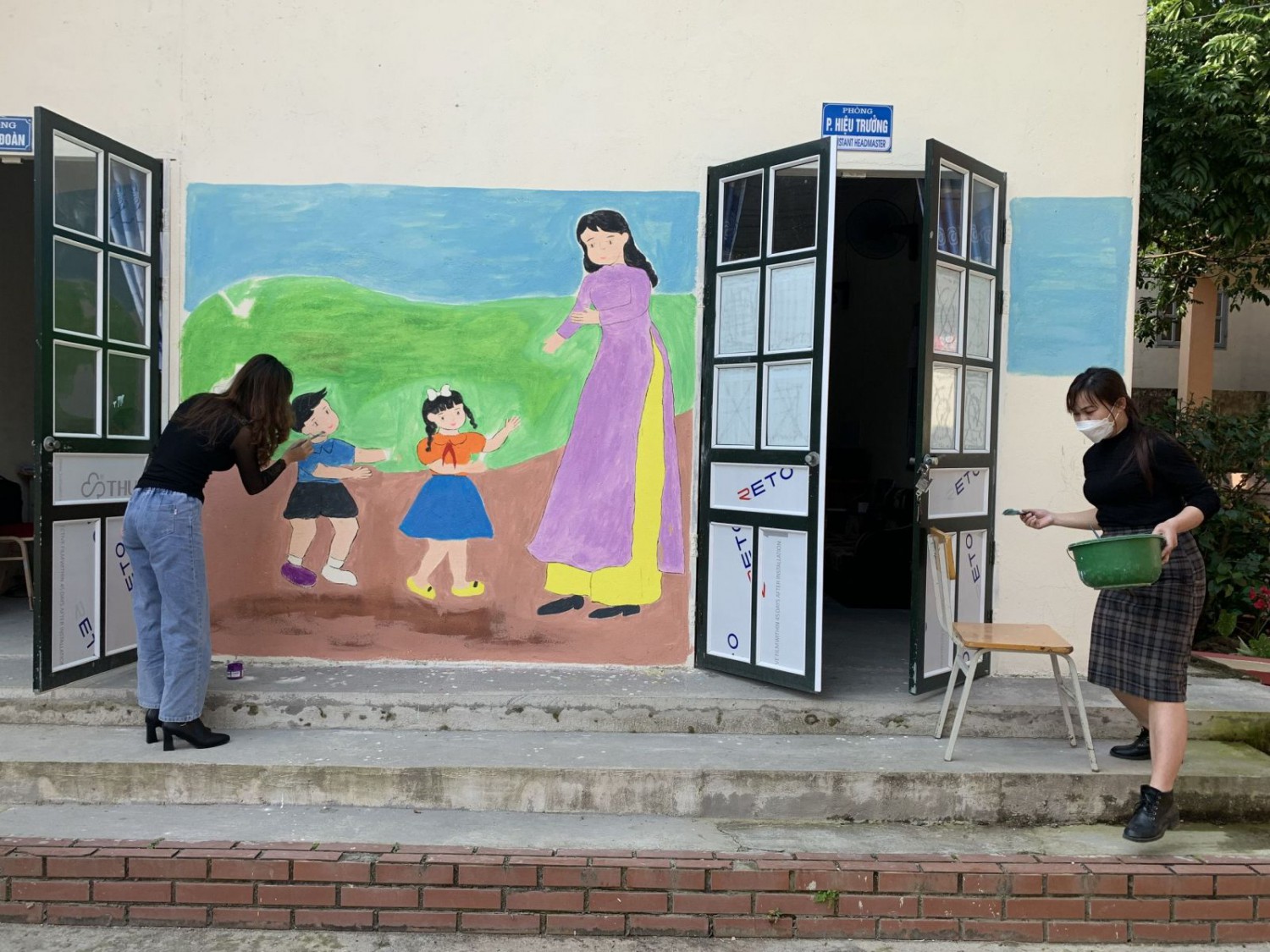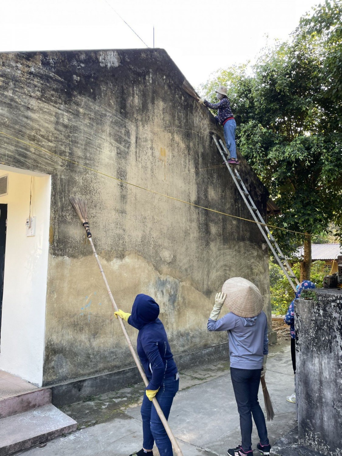 Phụ huynh học sinh tham gia lao động cùng giáo viên nhà trường