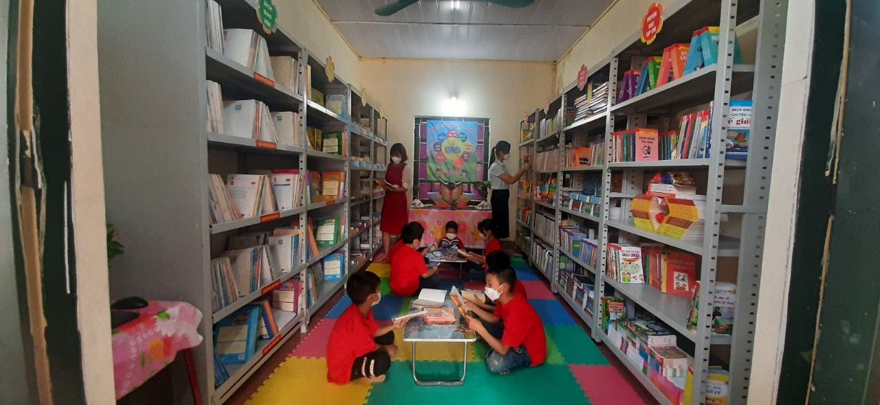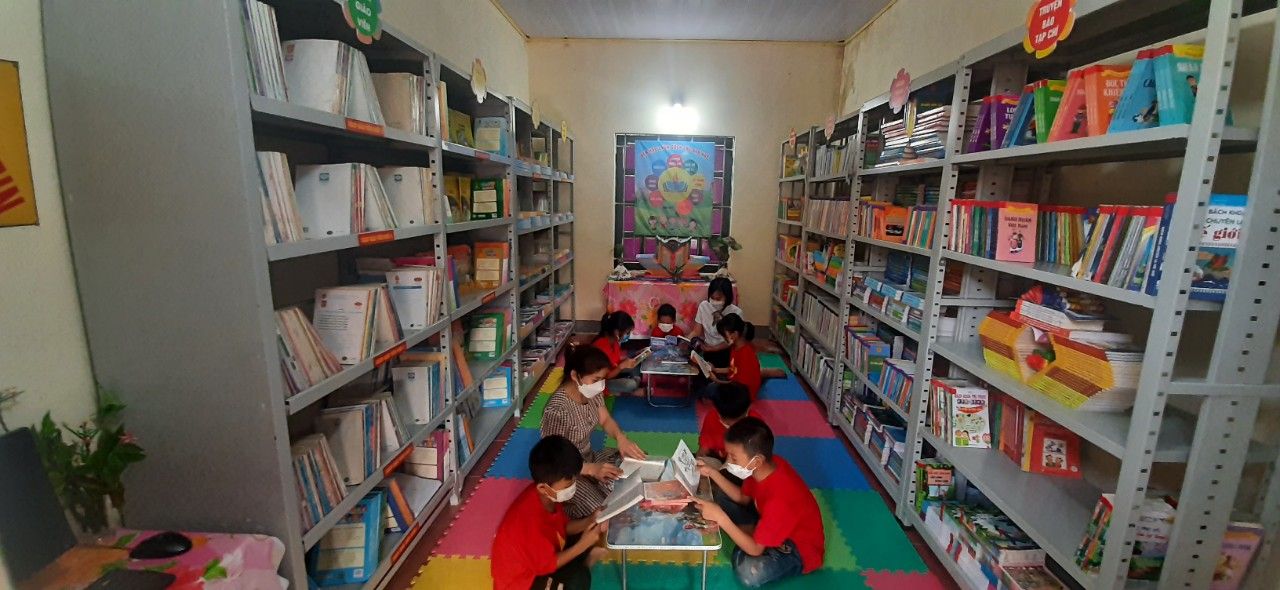 Ảnh các em học sinh đọc sách trong phòng thư viện nhà trường