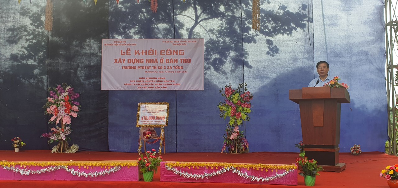 Được sự quan tâm của lãnh đạo các cấp, Ngày 10/6/2022 tại Trường PTDTBT tiểu học số 2 Sá Tổng đã tổ chức Lễ khởi công xây dựng công trình nhà ở bán trú cho các em học sinh. Công trình có giá trị 410.000.000 (bốn trăm mười triệu đồng) do đồng chí Lò Văn Mừng, ủy viên Ban thường vụ tỉnh ủy, Trưởng ban dân vận tỉnh ủy, Chủ tịch UBMTTQVN tỉnh Điện Biên trực tiếp kết nối với “Quỹ thiện nguyện Bình Nguyên” cùng các nhà hảo tâm đầu tư xây dựng.
