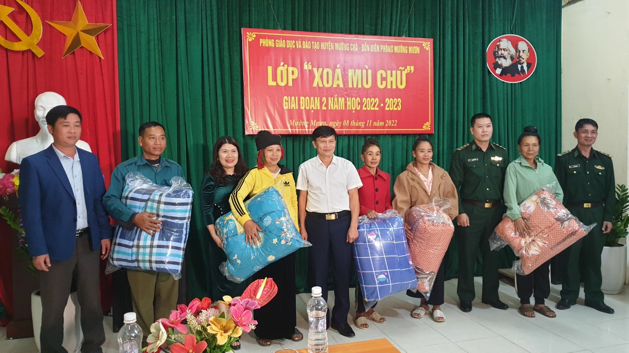 Dưới đây là một số hình ảnh phối hợp giữa Phòng Giáo dục và Đào tạo với Bộ chỉ huy Bộ Đội Biên phòng tỉnh, Đồn biên phòng Mường Mươn và học viên các lớp xóa mù chữ giai đoạn 2 ở các đơn vị trường học.