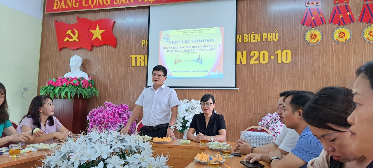 Được sự đồng ý của UBND huyện Mường Chà, sự đồng ý phối hợp của Phòng GDĐT thành phố Điện Biên Phủ, Phòng GDĐT huyện Điện Biên. Ngày 13/10/2022 Phòng GDĐT Mường Chà tổ chức chuyến đi thực tế, thăm quan, học tập kinh nghiệm tại các cơ sở giáo dục MN, TH, THCS thuộc Thành phố Điện Biên Phủ và huyện Điện Biên cho 11 cán bộ công chức, viên chức là Lãnh đạo, cán bộ chuyên môn phòng GDĐT và CBQL 03 trường MN, TH, THCS thị trấn, đồng chí Trần Hồng Quân – Trưởng phòng GDĐT làm trưởng đoàn.