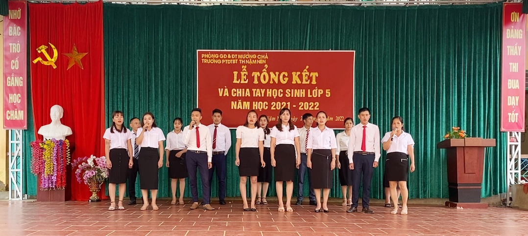 Năm học 2021 - 2022 là năm học có ý nghĩa vô cùng quan trọng; Năm học dịch bệnh COVID-19 vẫn diễn biến phức tạp, năm học “Tiếp tục đổi mới công tác quản lý và nâng cao chất lượng giáo dục”, năm học tiếp tục thực hiện cuộc các cuộc vận động lớn của nghành: Cuộc vận động “Học tập và làm theo tấm gương tư tưởng, đạo đức phong cách Hồ Chí Minh”, cuộc vận động “ Mỗi thầy giáo, cô giáo là tấm gương đạo đức tự học và sáng tạo” và thực hiện phong trào thi đua “xây dựng trường học thân thiện học sinh tích cực”. Mở đầu chương trình lễ tổng kết năm học này, là chương trình văn nghệ chào mừng.