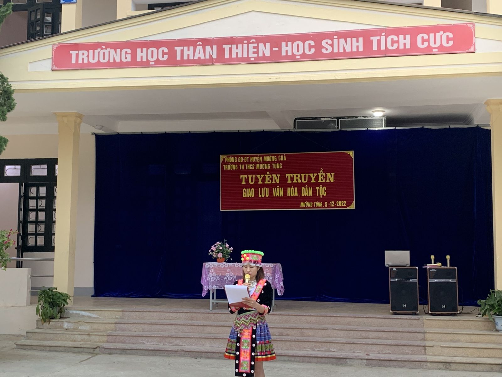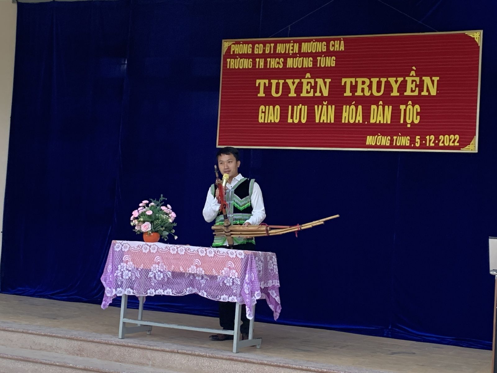 Mở đầu chương trình các cô Lò Thị Trang và Nguyễn Thị Phương Thảo đã tuyên truyền về ý nghĩa bản sắc văn hóa riêng của từng dân tộc, cũng như vai trò và tầm quan trọng của việc giữ gìn bản sắc văn hóa của các dân tộc trên đất nước Việt Nam. các cô cũng giới thiệu sơ qua về một số đặc điểm, phong tục tập quán, các loại nhạc cụ phổ, điệu múa truyền thống của các dân tộc sống trên địa bàn xã Mường Tùng.