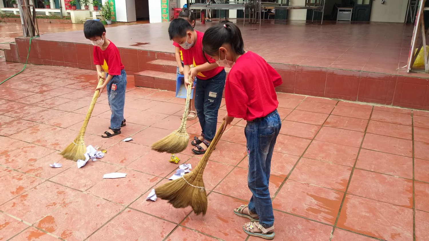 Tổ chức thường xuyên hàng ngày cho các em học sinh tham gia vệ sinh lớp học, sân trường, phòng ở, phòng ăn, vệ sinh cá nhân, rửa tay bằng xà phòng hàng ngày (Trước khi ăn và sau khi đi vệ sinh), chăm sóc bồn hoa, cây cảnh, thu gom, rác,  quét dọn, làm sạch mọi nơi, mọi lúc.