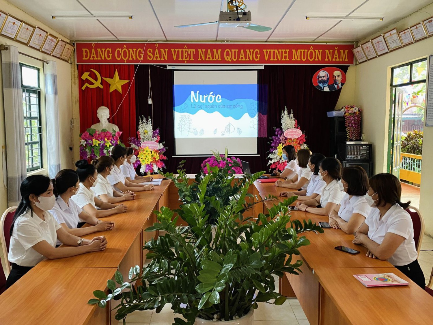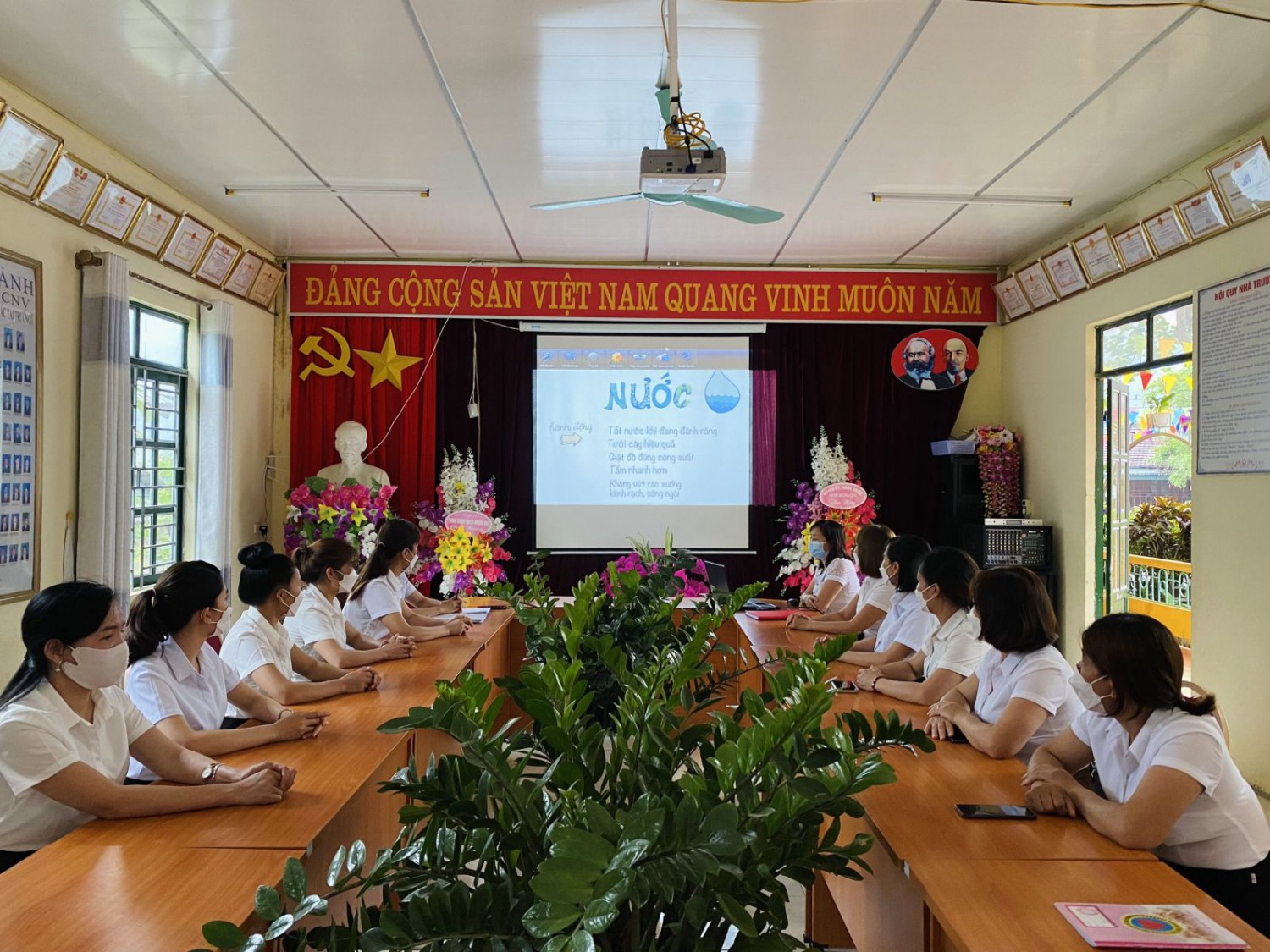 Tuyên truyền cho học sinh kiến thức sử dụng nước sạch, giữ gìn vệ sinh môi trường, vệ sinh cá nhân trong tiết sinh hoạt dưới cờ, sinh hoạt cuối tuần để các em có sức khoẻ tốt, tham gia học tập và rèn luyện năng lực phẩm chất nâng cao chất lượng giáo dục.