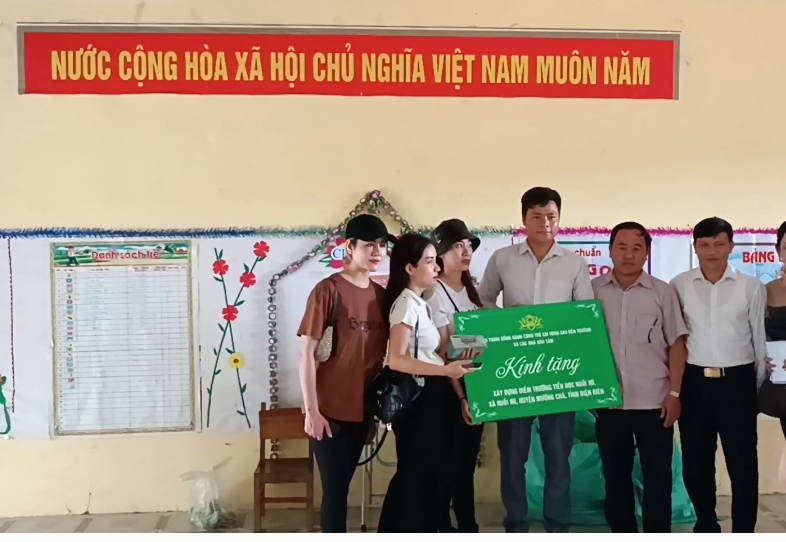 Đại diện đoàn từ thiện trao tặng kinh phí xây dựng điểm trường